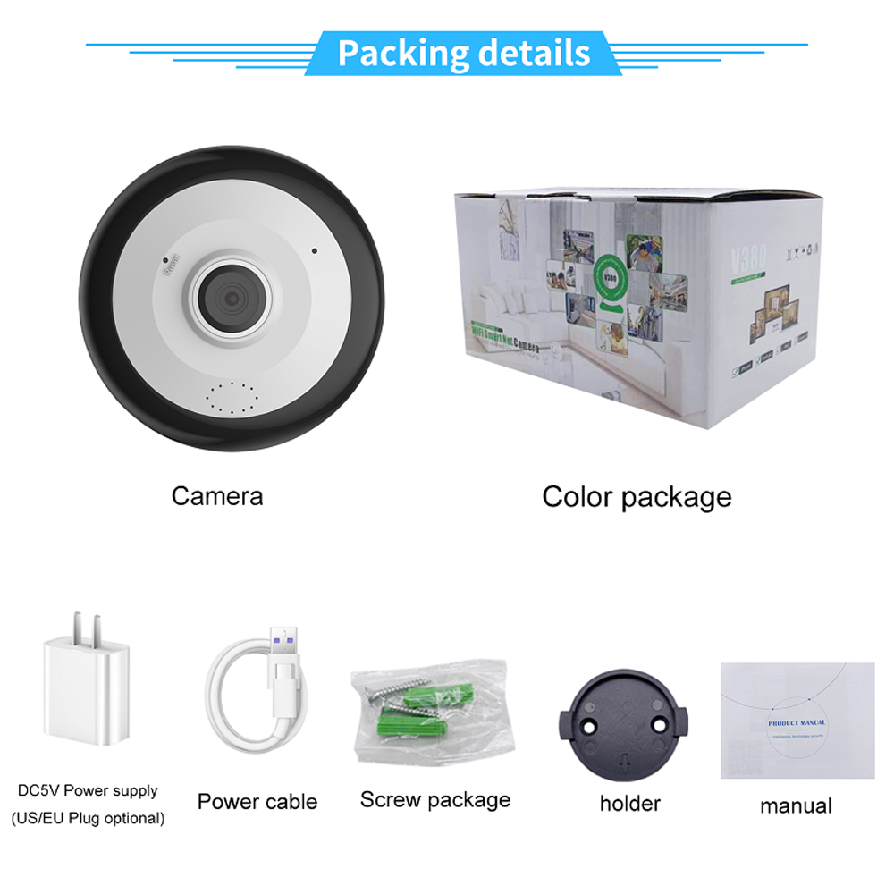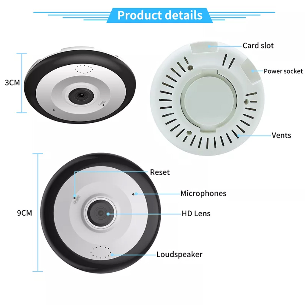 كاميرا مراقبة 360 درجة بانورامية مع مكبر صوت وميكروفون ورؤية ليلية